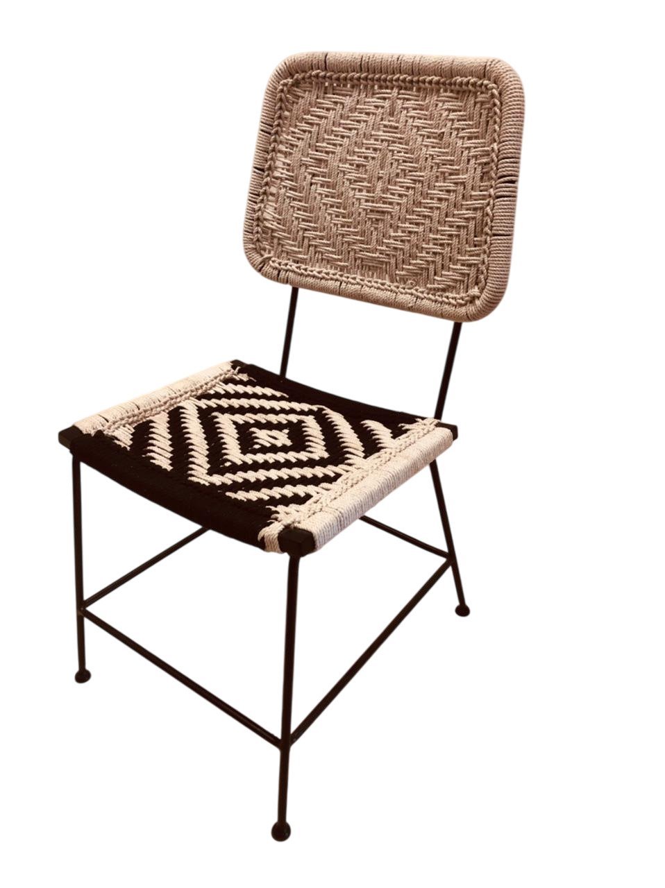 eatures a robust distressed metal frame on both the table and chairs